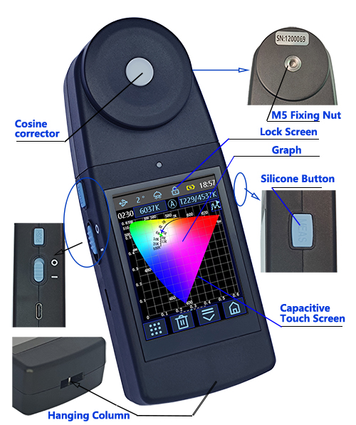 CL503 color illuminometer stand-alone instrument can easily realize spectrum, Ev, color temperature, dominant wavelength, and other parameters measurement.