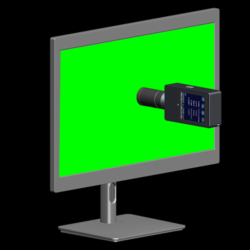 在暗室环境中,显示器/液晶面板点亮预热半小时,CI820光谱亮度计固定在固定夹具上,使其测试光轴垂直显示屏表面,探头距离显示器表面距离在30mm左右/或测量口贴紧显示屏。控制显示器面板显示不同的颜色,CI820光谱亮度计可采集1°测量角度的显示屏亮度、色品坐标和辐亮度光谱,进而计算显示器的色域、均匀性,并且可以做GAMMA/DICOM/色彩校正。