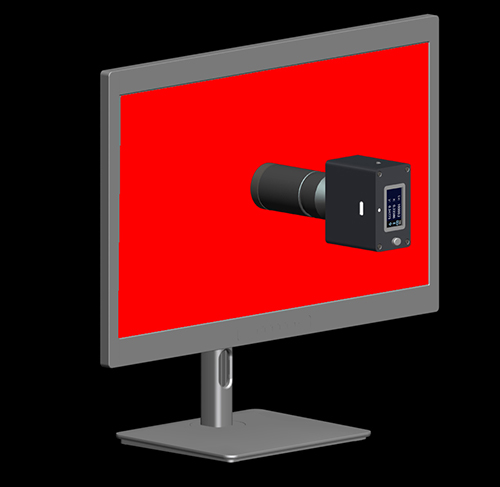 在暗室环境中,显示器/液晶面板点亮预热半小时,CI808光谱色彩分析仪固定在固定夹具上,使其测试光轴垂直显示屏表面,探头距离显示器表面距离在30mm左右/或测量口贴紧显示屏。控制显示器面板显示不同的颜色,CI808光谱色彩分析仪可采集1°测量角度的显示屏亮度、色品坐标和辐亮度光谱,进而计算显示器的色域、均匀性,并且可以做GAMMA/DICOM/色彩校正。