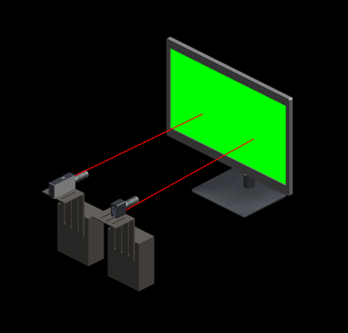 可以将多台CI808S分别固定在小尺寸显示模组中心,主控电脑用专门的同步测试工具软件,通过USB数据线或蓝牙控制多台CI808S进行同步测试。主控电脑控制显示器显示不同的颜色,并控制CI808S进行光度数据采集,然后进行对各小尺寸显示模组的显示参数特性化,进而分别进行特性化适配,从而达到使拼合后的大显示屏显示一致和均匀。